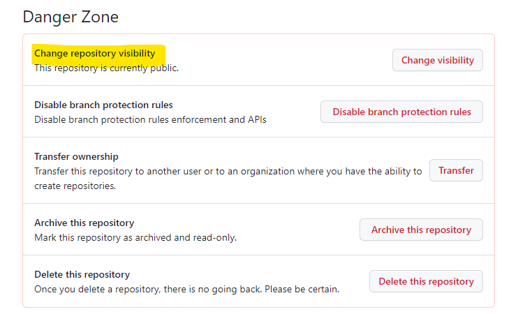 여기서 가장위에 있는 항목을 통하여 private <-> public으로 변경이 가능하다.