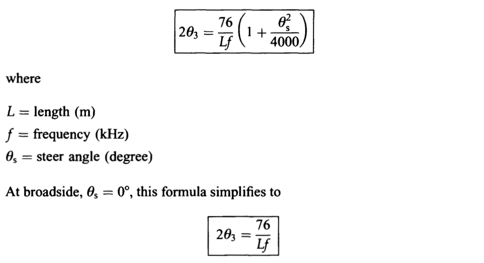 배열 공식은 모두 Element의 갯수로 표현이 된다. 이 모든 공식은 근사치이긴 하지만 실제 소나 설계에 사용되는 것에 적합하기에 사용된다.