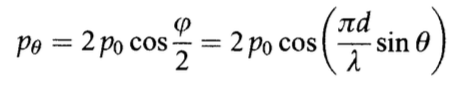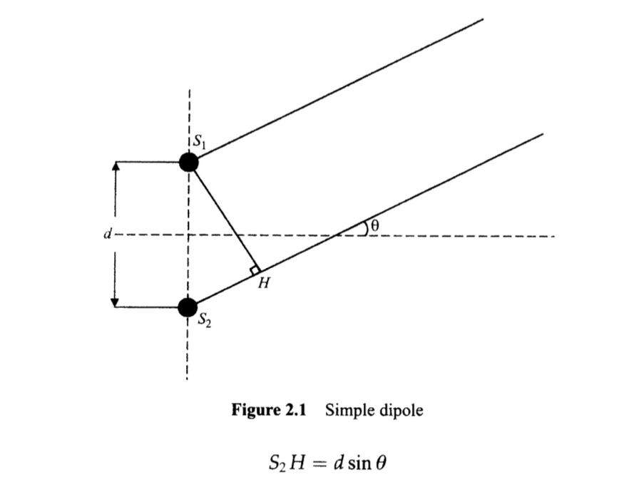 S1과 S2는 동일한 위상과 진폭을 가진 점원이다. θ 방향으로 멀리 떨어진 하이드로폰이 저 둘에서 나오는 소리를 잡아낸다고 하자. 하이드로폰은 동일한 진폭을 가진 음파를 받아낼 것이다. 하지만 하이드로폰에서 이들을 받았을 때 각각의 위상을 S2H 정도에 맞게 차이가 난다.