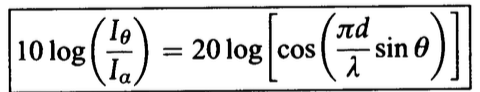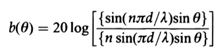 Beam pattern의 강도는 dB로 나타내면 다음과 같은 식으로 표현할 수 있다.