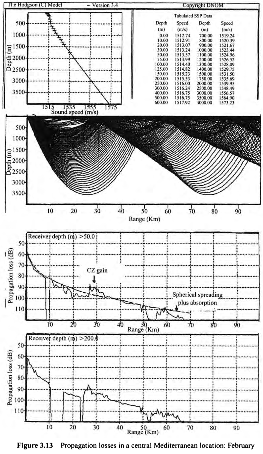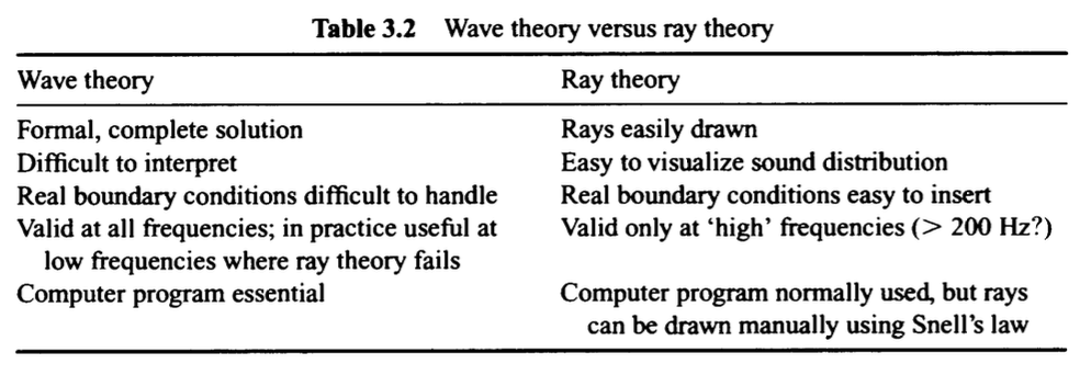 두 가지 접근법을 표 3.2에서 비교해보자.소나 모델링 핸드북(영국 국방부 DERA 발행)은 다양한 파동 이론 및 광선 이론 모델과 그 실제적 한계에 대한 유용한 정보를 제공하는 자료이다.