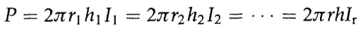 이번에는 그림 3.1의 b를 봐라. 음원이 h 미터로 떨어져있는 평행한 평면으로 둘러쌓여있는 경우 음원을 둘러싼 증가하는 원통형 표현을 가로지르는 힘은 다음과 같이 표현할 수 있다.