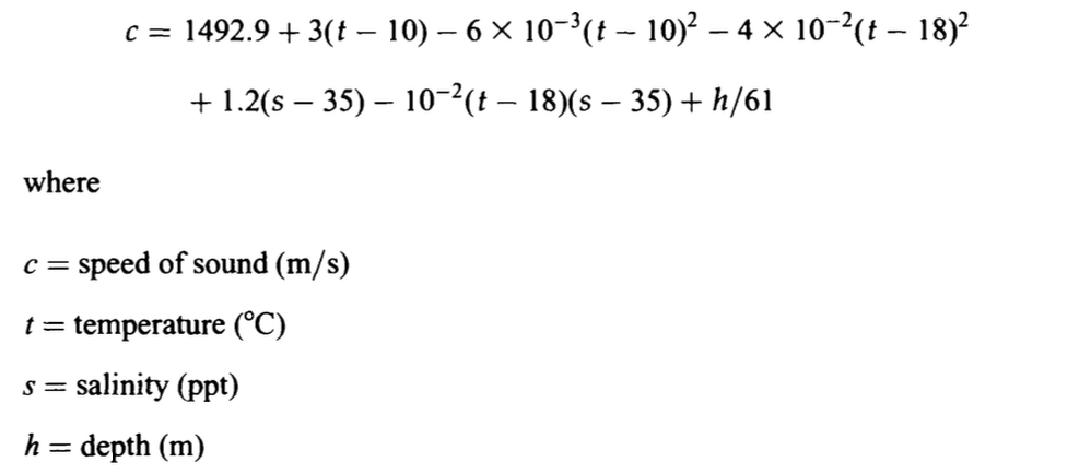 바다의 음속은 온도, 압력(수심), 염도에 따라 달라진다. 음속을 계산하는 데는 다양한 경험적 공식이 존재하는데, 이것 중 하나가 Leroy의 공식이 이다.
