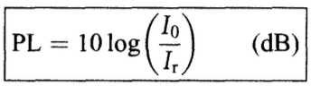 Propagation Loss(PL), 일명 전파 감소는 음원과 이로부터 멀리 떨어진 receiver 사이에서의 소리 강도의 감소를 정량적으로 측정한 값이다. Io가 소리가 발생한 지점에서 1미터 떨어진 곳의 음 강도이고 Ir은 receiver에서의 음 강도라면 PL을 아래와 같은 식으로 표현할 수 있다.