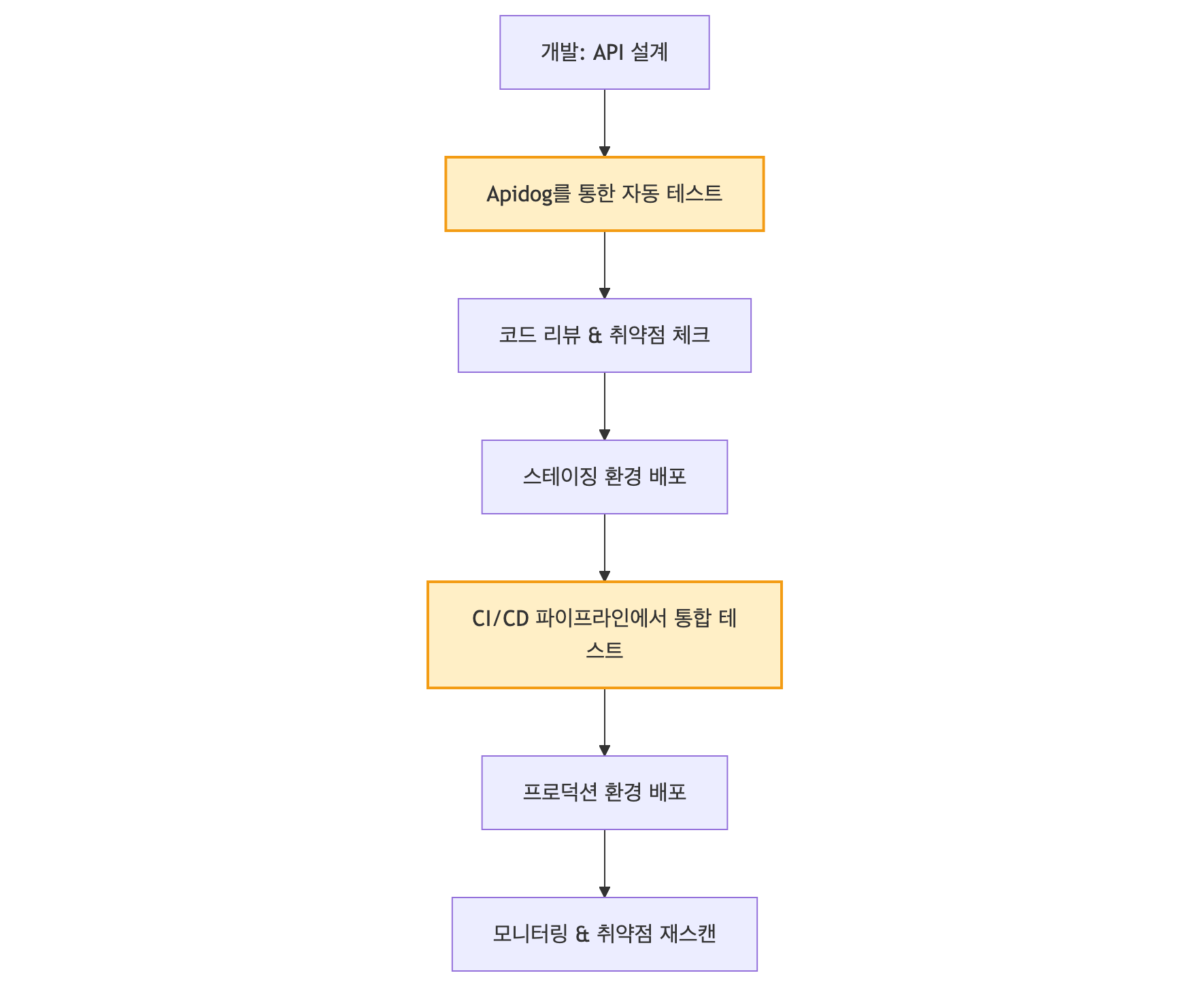 설명: 노란색 노드가 Apidog 통합 포인트