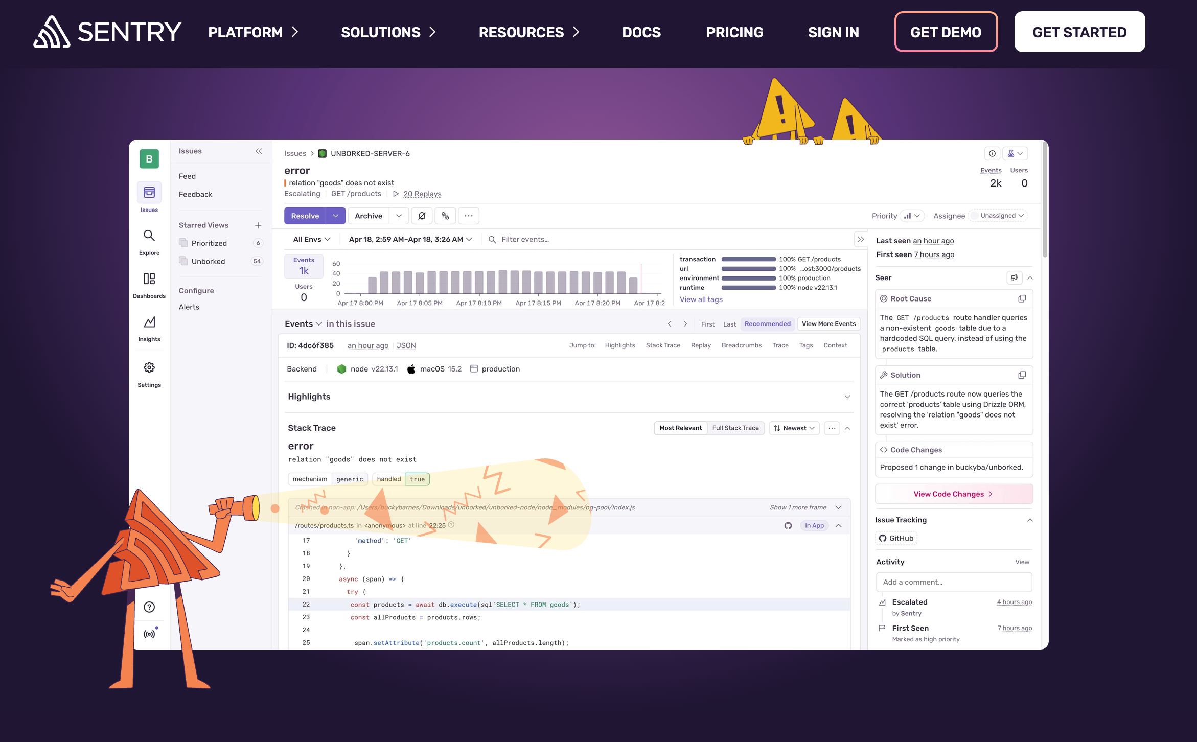 모든 사전 검사를 수행해도, 일부 버그는 불가피하게 놓치게 됩니다—여기서 Sentry가 등장합니다. Sentry는 애플리케이션 모니터링 및 오류 추적 도구로, 예외, 충돌, 속도 저하를 자동으로 실시간으로 포착합니다.