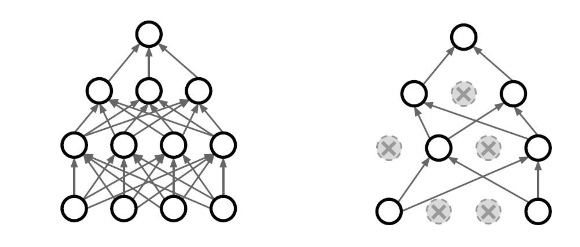 Dropout 기법은 특정 노드를 제거하고 학습을 진행합니다..