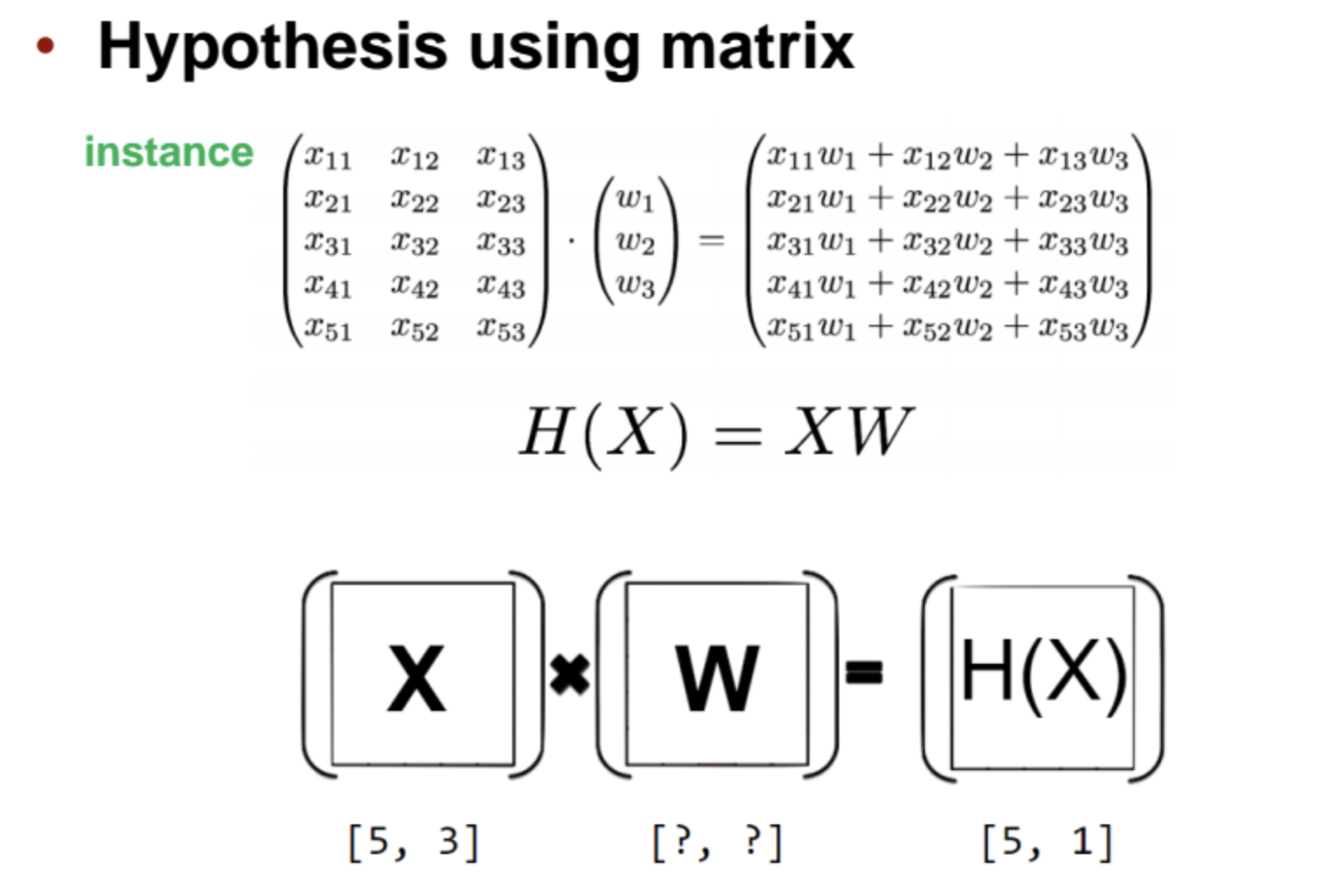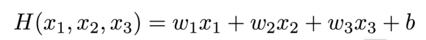 예를 들면 키, 몸무게, 성별이 각각의 w1, w2, w3가 될수 있고, 해당 결과들을 dot product를 통해서 계산한 결과가 H(x)가 됩니다.