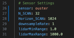 우리는 OS1-32-U 모델을 사용하고 있었기 때문에 N_SCAN은 32로 Horizon_SCAN은 1024로 설정하였다.