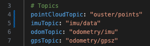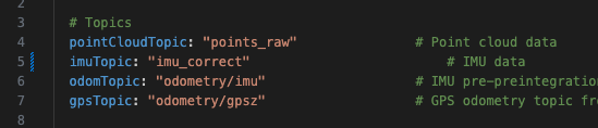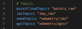 데이터를 수집하기 위해서는 LIO-SAM의 설정 파일을 변경해주어야 한다.