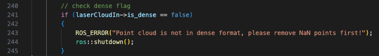 [ERROR] [1743588602.844451925]: Point cloud is not in dense format, please remove NaN points first!
