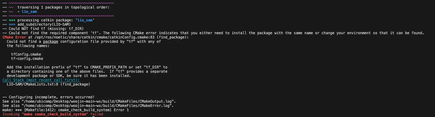 돌아보면 이게 비극의 시작이었던 것 같지만 프로젝트에서 사용하는 모터 드라이버가 지원하는 버전이 noetic 뿐인지라 어쩔 수 없는 일이었다. (만약 Noetic 버전을 사용할 필요가 없는 사람이라면 LIO-SAM github에서 명시하는 테스트 된 버전으로 진행하는 것이 정신건강에 좋을 수 있다. 그렇다면 이 글도 읽을 필요가 없을 것이다..)