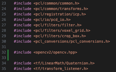 에러 해결을 위해서는 LIO-SAM/include/utility.h 파일을 수정하면 되는데 #include <opencv2/opencv.hpp> 구문을 라인 33번(#include <pcl_conversions/pcl_conversions.h> 밑)으로 옮기게 되면 정상적으로 빌드되는 것을 확인하였다.