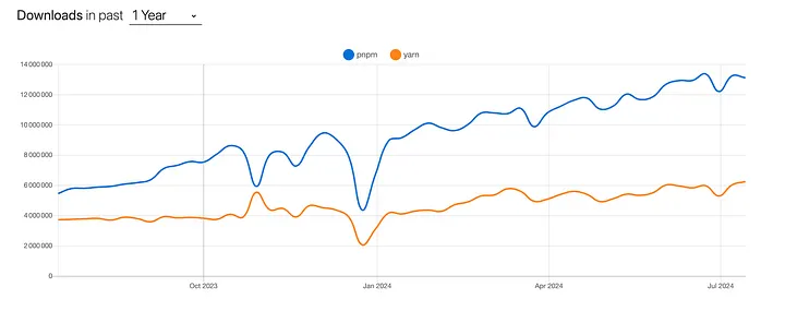 https://npm-stat.com/charts.html?package=pnpm&package=yarn&package=npm&from=2021-01-04&to=2024-07-21