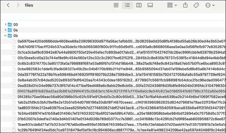 저장소(CAS)를 방문하면 모든 콘텐츠가 해시 이름으로 레이블이 지정되어 있는 것을 확인할 수 있습니다.