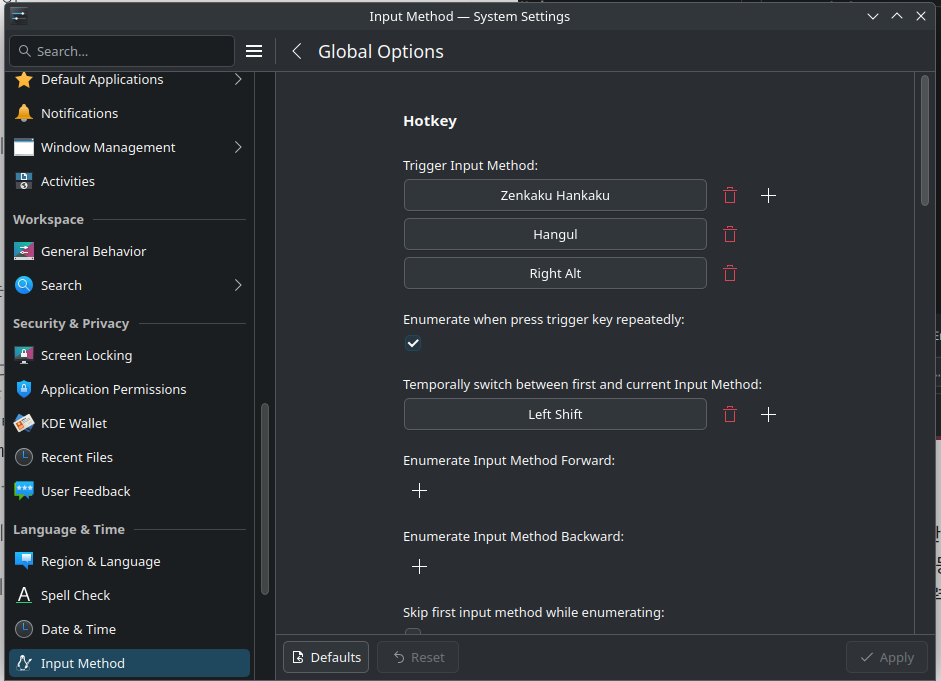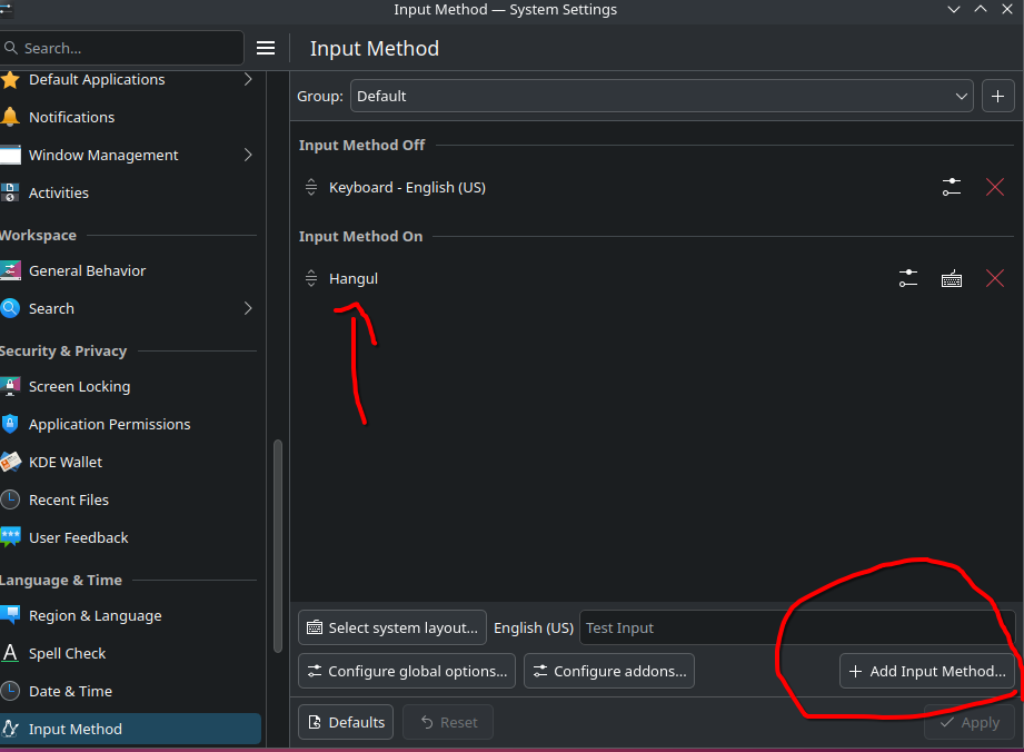 ์ ์ธํ๋ฉ์๋๋ผ๋ ํญ์ด ์์ฑ๋๊ฑธ ํ์ธํ ์ ์๋ค. add input method๋ฅผ ํด๋ฆญํ๊ณ input method on ์์น์ ํ๊ธ ์ถ๊ฐ.