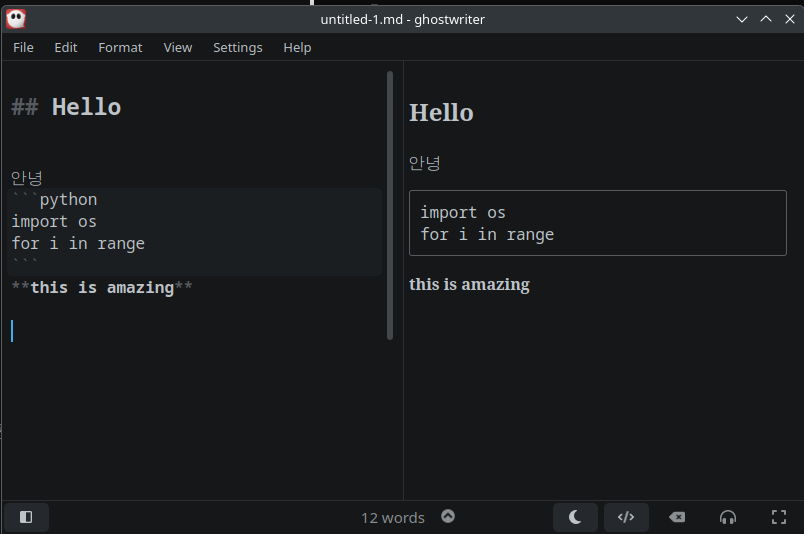 4) ghostwriter: ๊ธฐ๋ณธ์ผ๋ก ๋งํฌ๋ค์ด ์๋ํฐ๋ฅผ ์ฃผ๋ค์???