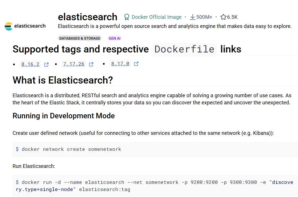 사용하고자 하는 컨테이너는 elasticsearch 라는 검색 및 분석 엔진으로