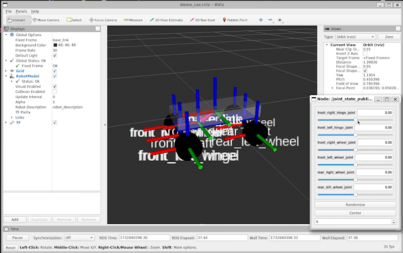 roslaunch rviz_tutorial demo_car.launch