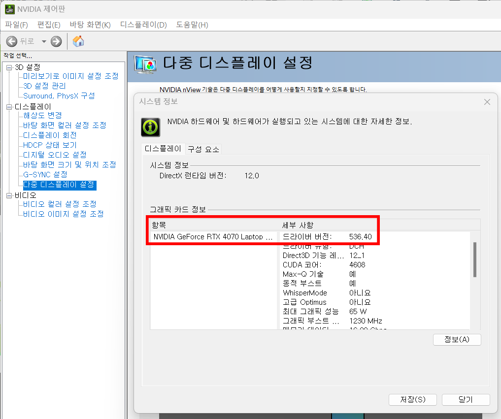 이때 당연히 설치된 그래픽카드의 드라이버를 최신 버전으로 업데이트하고 CUDA 라이브러리를 업데이트 해야 하지만