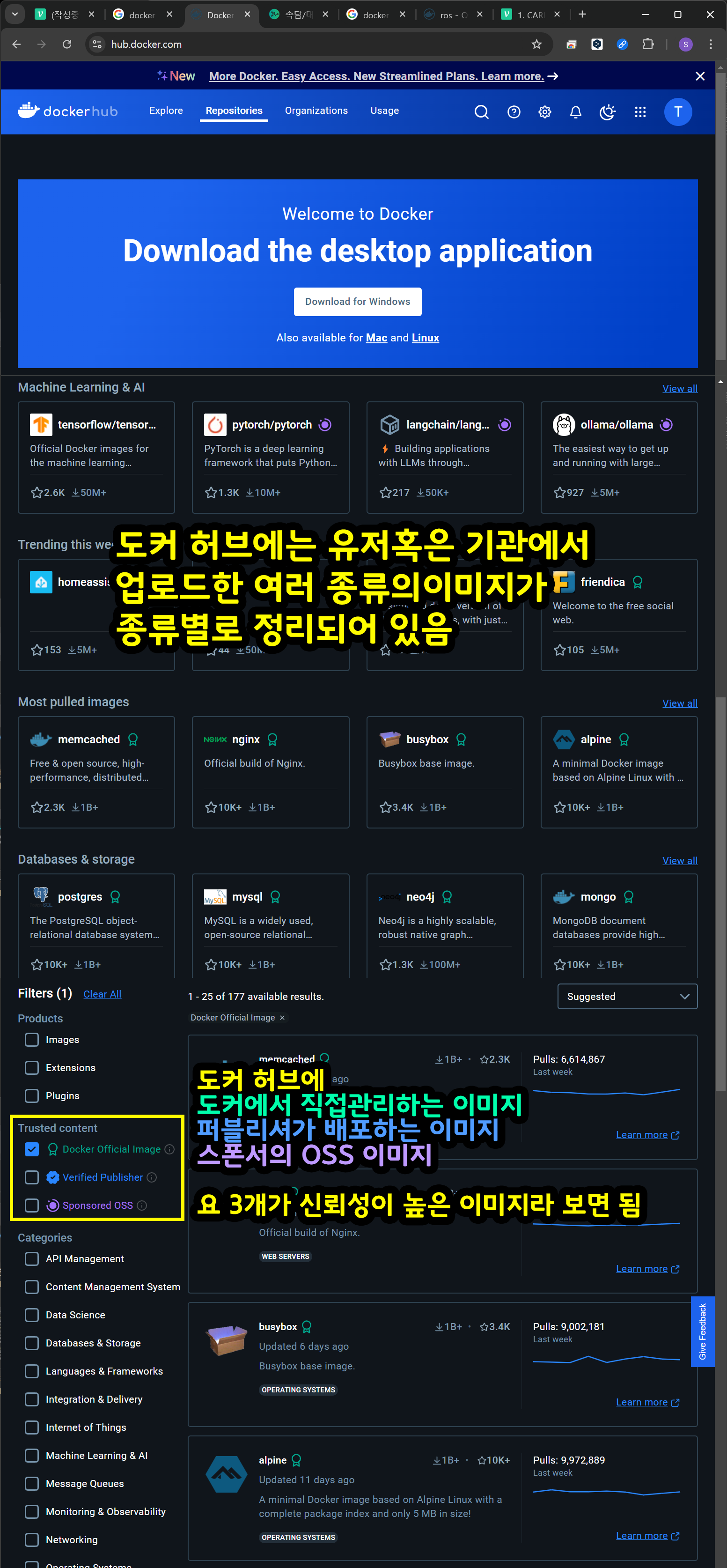 도커 허브를 이해했으니 도커 허브에서 임의의 이미지를 받아보자