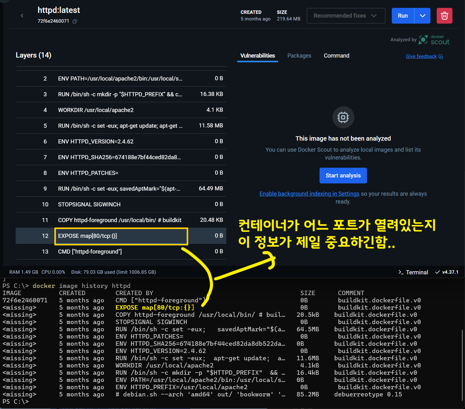 필자는 httpd라는 아파치 웹 서버 컨테이너의 설계도면(이미지파일) 구조를 참조하려 한다.