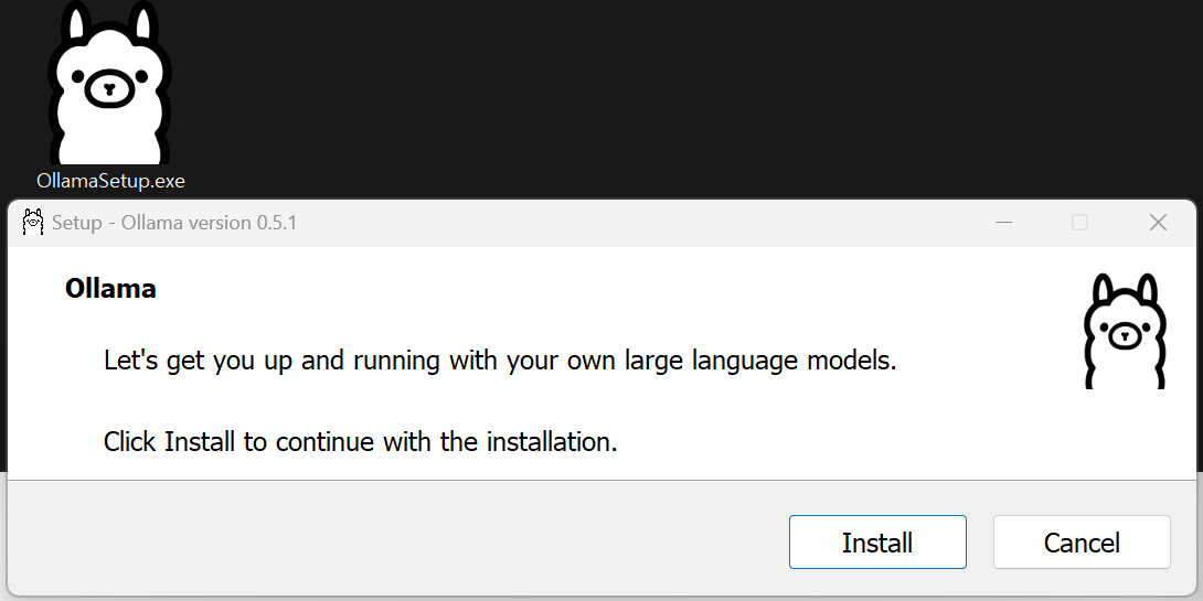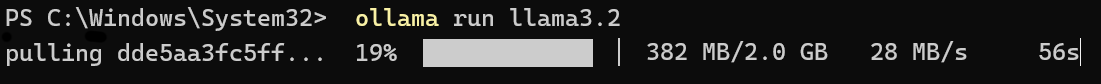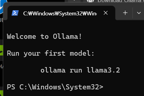 이렇게 바로 PowerShell 창이 열리면서 llama3.2를 사용하고 싶으면 ollama run llama3.2라는 메세지가 포함된 창이 팝업된다.