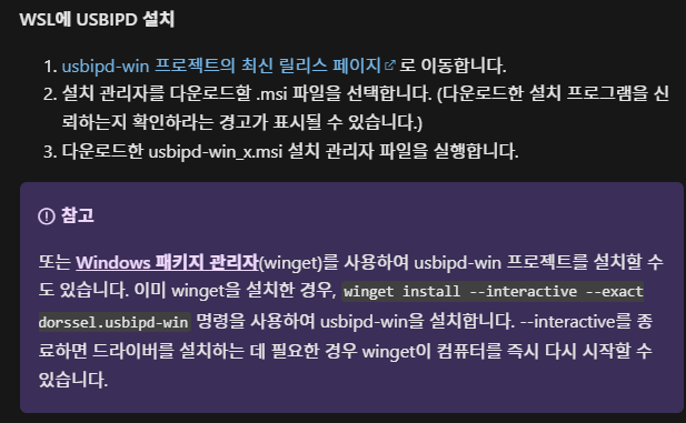 https://learn.microsoft.com/ko-kr/windows/wsl/connect-usb#install-the-usbipd-win-project