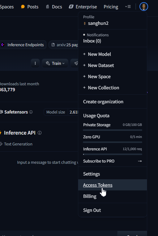이 모델을 다운로드 받으려면 뭔가 설정을 해줘야 하는데 토큰설정이 필요하다