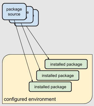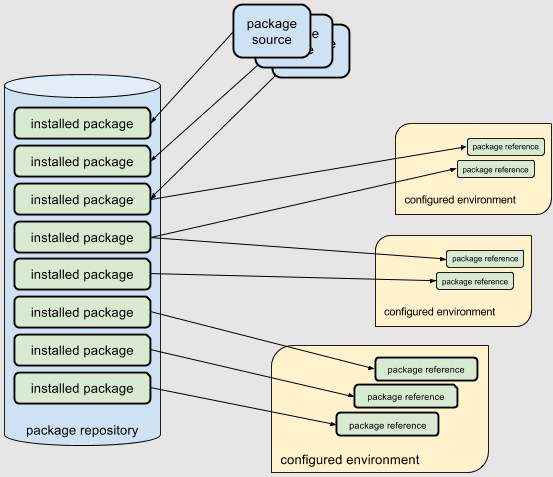 그러나 rez의 경우 중앙 저장소(REZ_PACKAGES_PATH)에 모든 패키지를 설치하고, 가상 환경을 실행할 때 필요한 패키지만 선택하여 호출하는 방식으로 작동한다.
