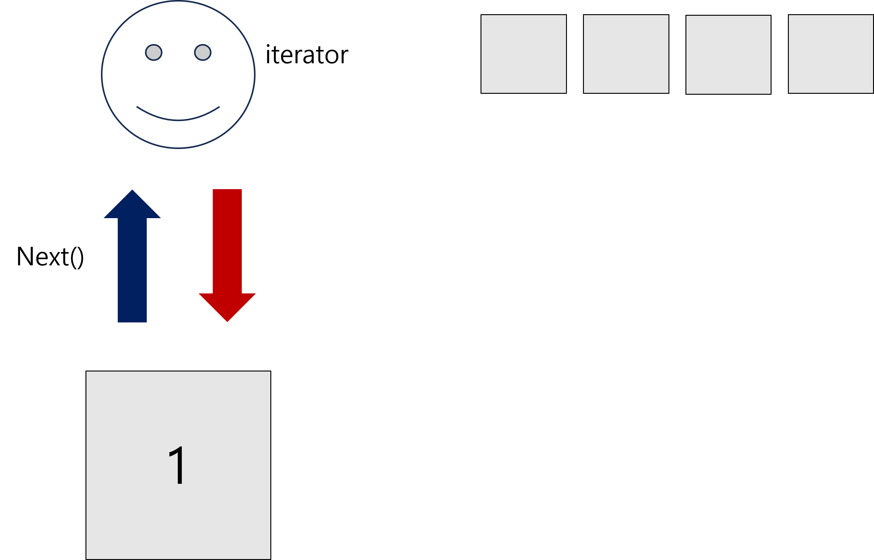 이번에도 똑같이 5장의 카드가 있습니다. 하지만 이번엔 딜러가(iterator) 카드를 모두 가져가고 요청하면 하나씩 주겠다고 합니다.