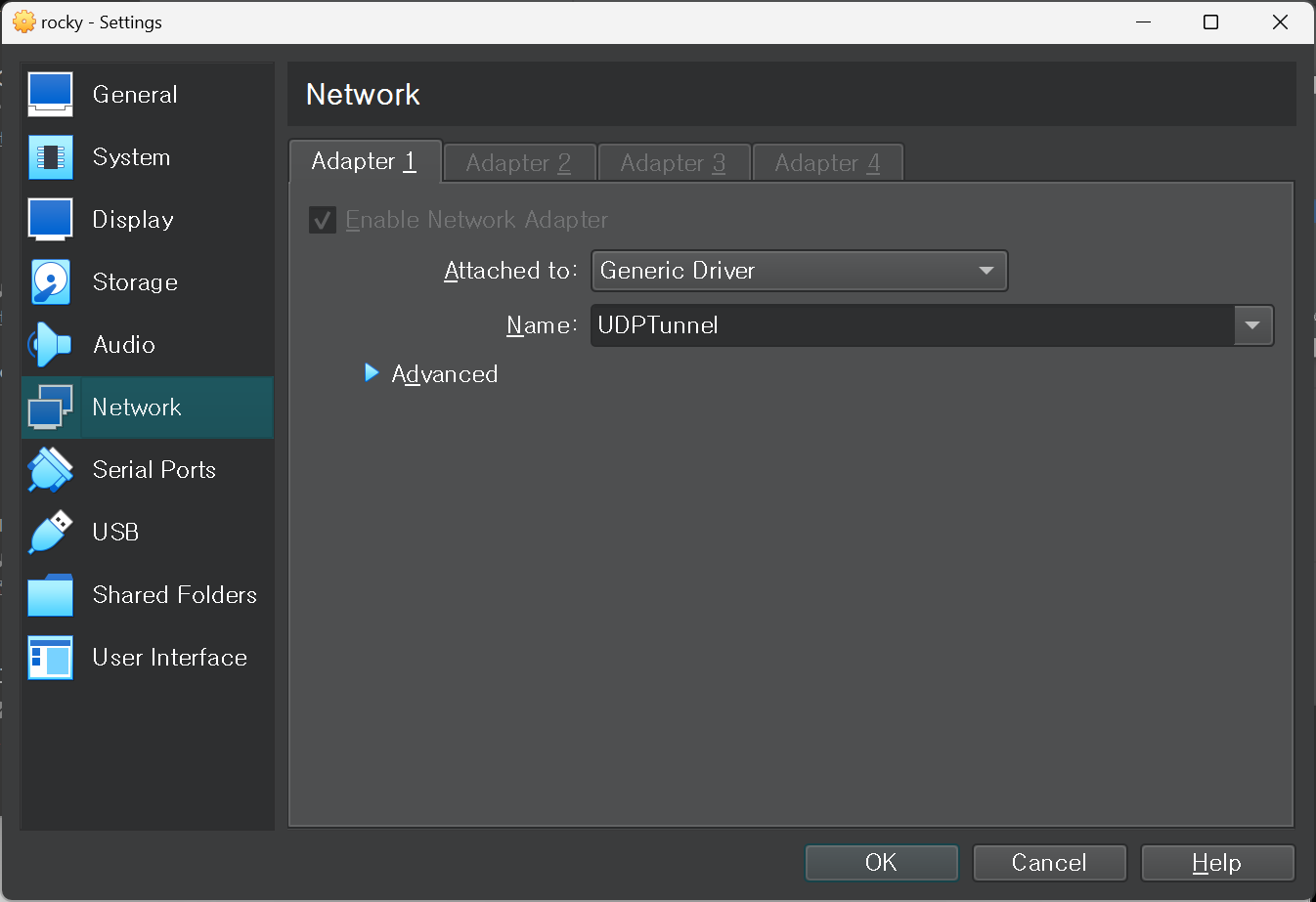 체크했을경우 이런식으로 방금 추가한 rocky linux 가상머신의 Network Adapter부분이 자동으로 Generic Driver 바뀐걸 볼수있다
