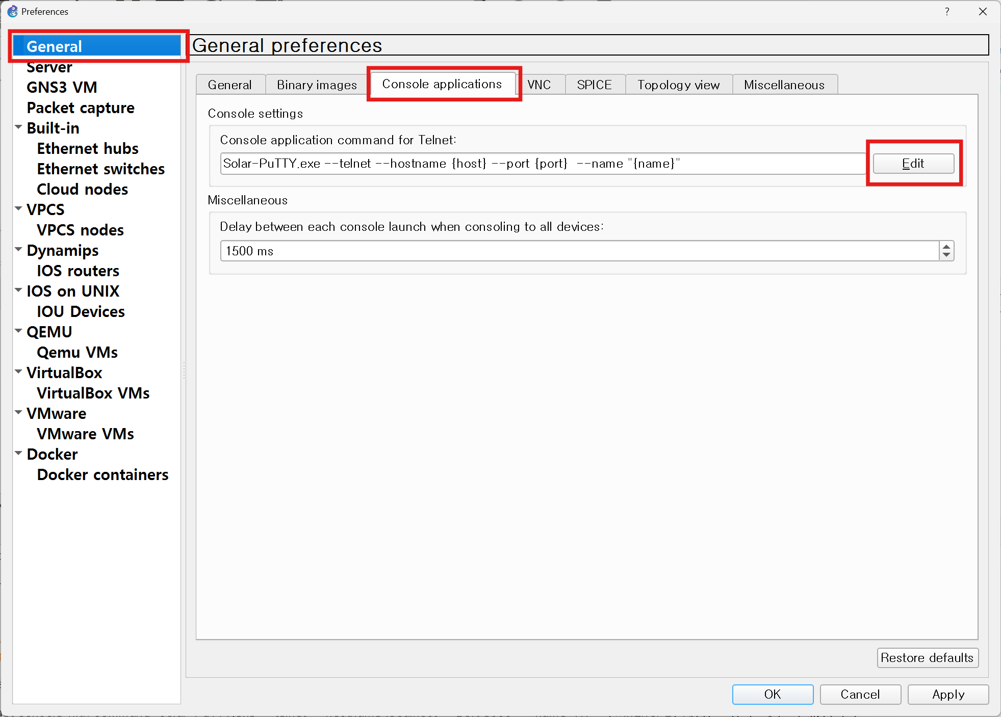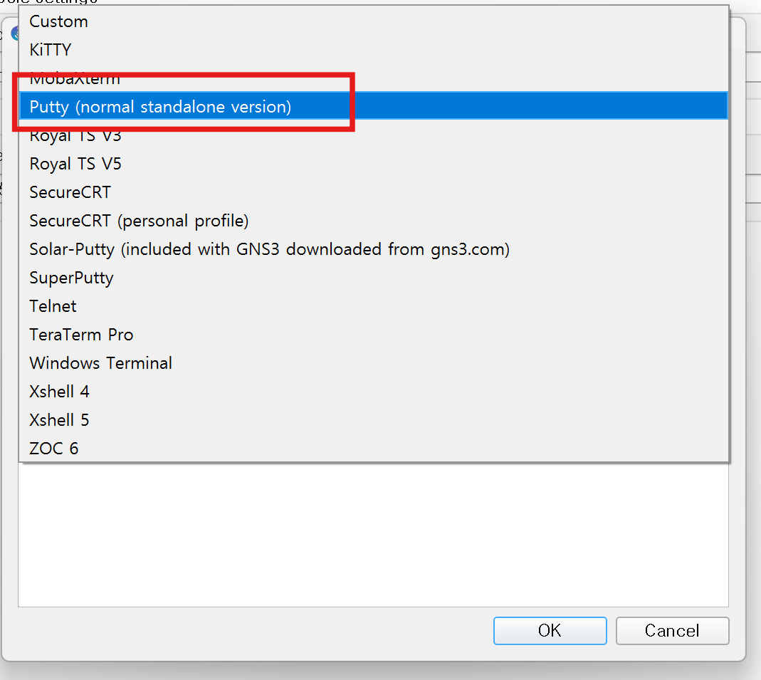 Solar-PuTTY를 설치하지않았는데 이렇게 되면 라우터와 스위치의 콘솔 엑세스가 불가능해지기때문에 그냥 PuTTY를 사용해주도록 설정해준다