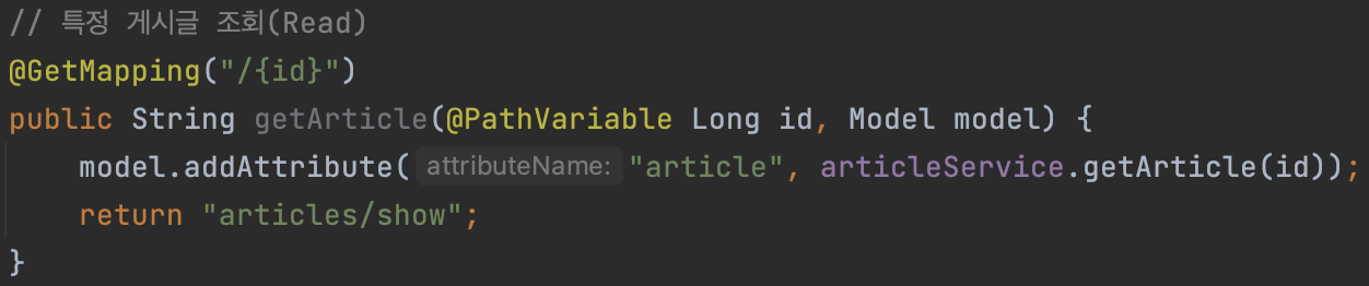 애초에 길게 작성된 코드가 아니라 articleRepository 로부터 게시글을 찾아오는 게 전부였다.