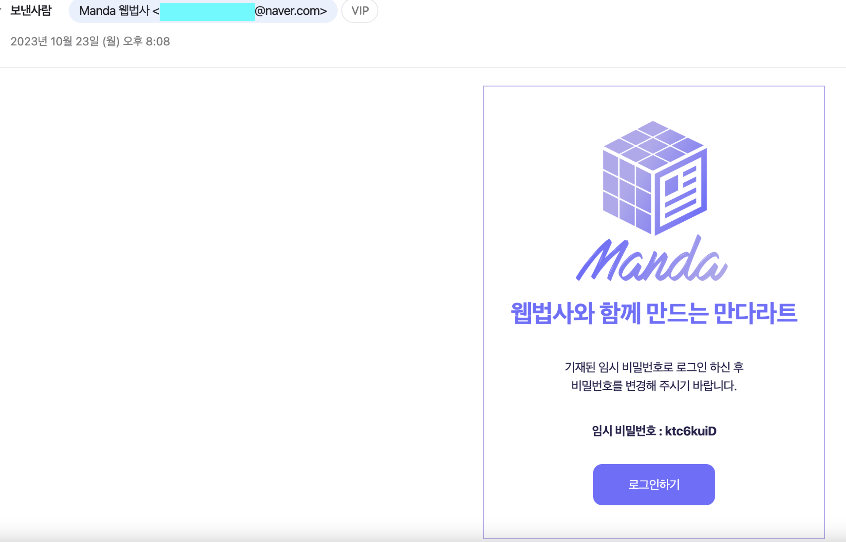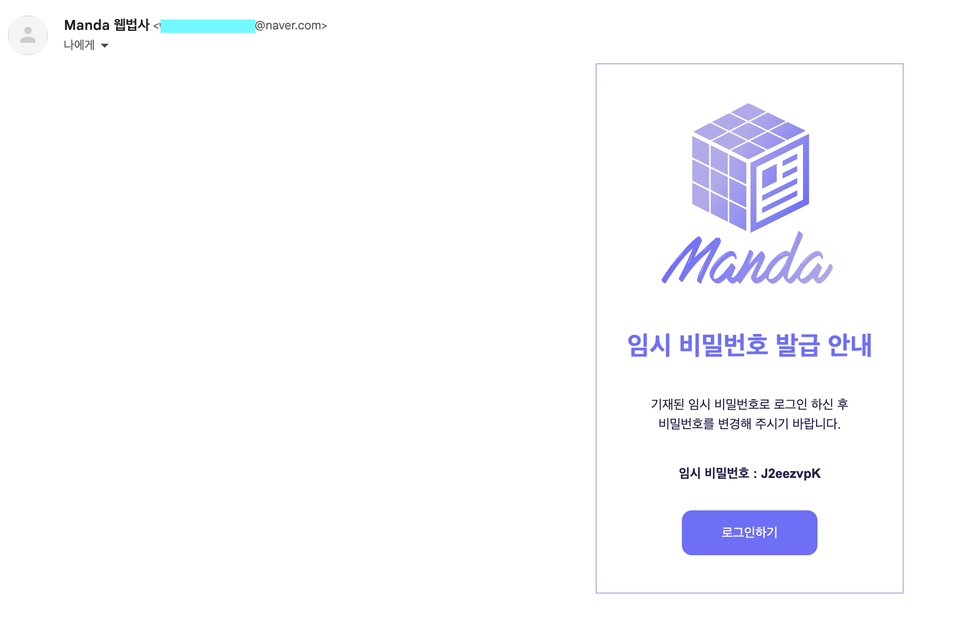 기재된 임시 비밀번호로 로그인 하신 후 <br>