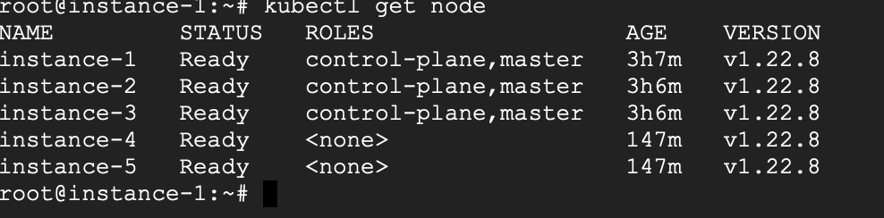 모든 노드의 STATUS 항목 값이 Ready 라면 정상적으로 완료한 것.