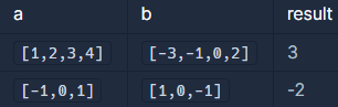 길이가 같은 두 1차원 정수 배열 a, b가 매개변수로 주어집니다. a와 b의 내적을 return 하도록 solution 함수를 완성해주세요.