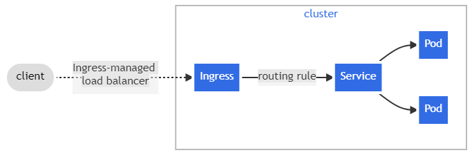 Ingress는 외부에서 클러스터 내부에 있는 서비스로 접속하기 위한 오브젝트입니다. 주로 HTTP로 접속합니다