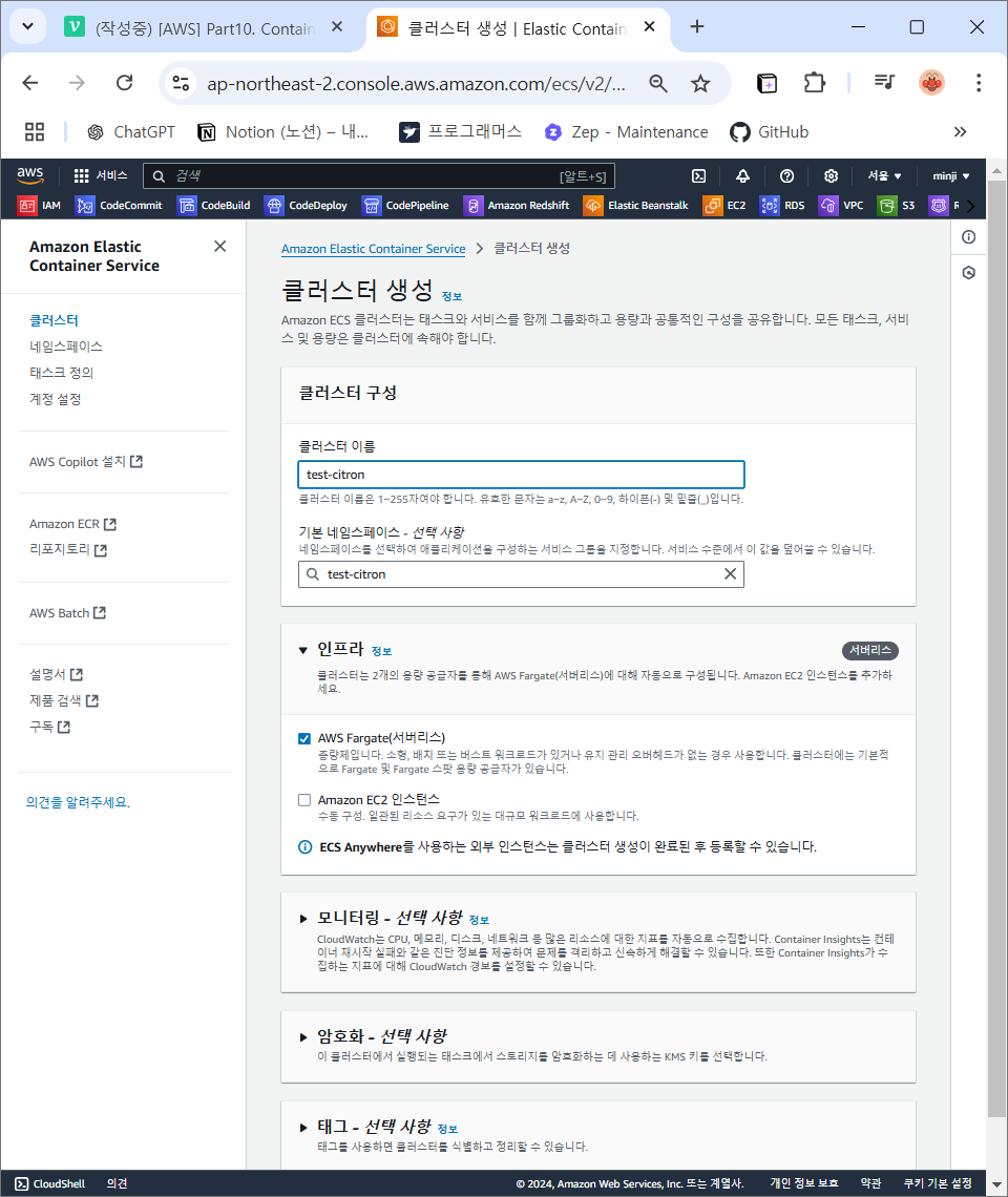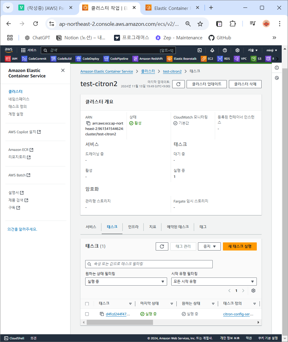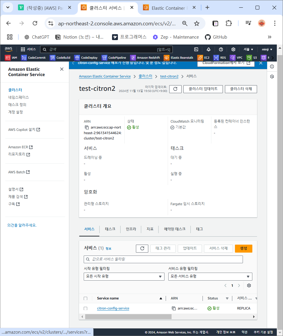Docker와 같은 컨테이너화된 애플리케이션을 AWS 인프라에서 관리하고 배로할 수 있도록 하는컨테이너 오케스트레이션 서비스