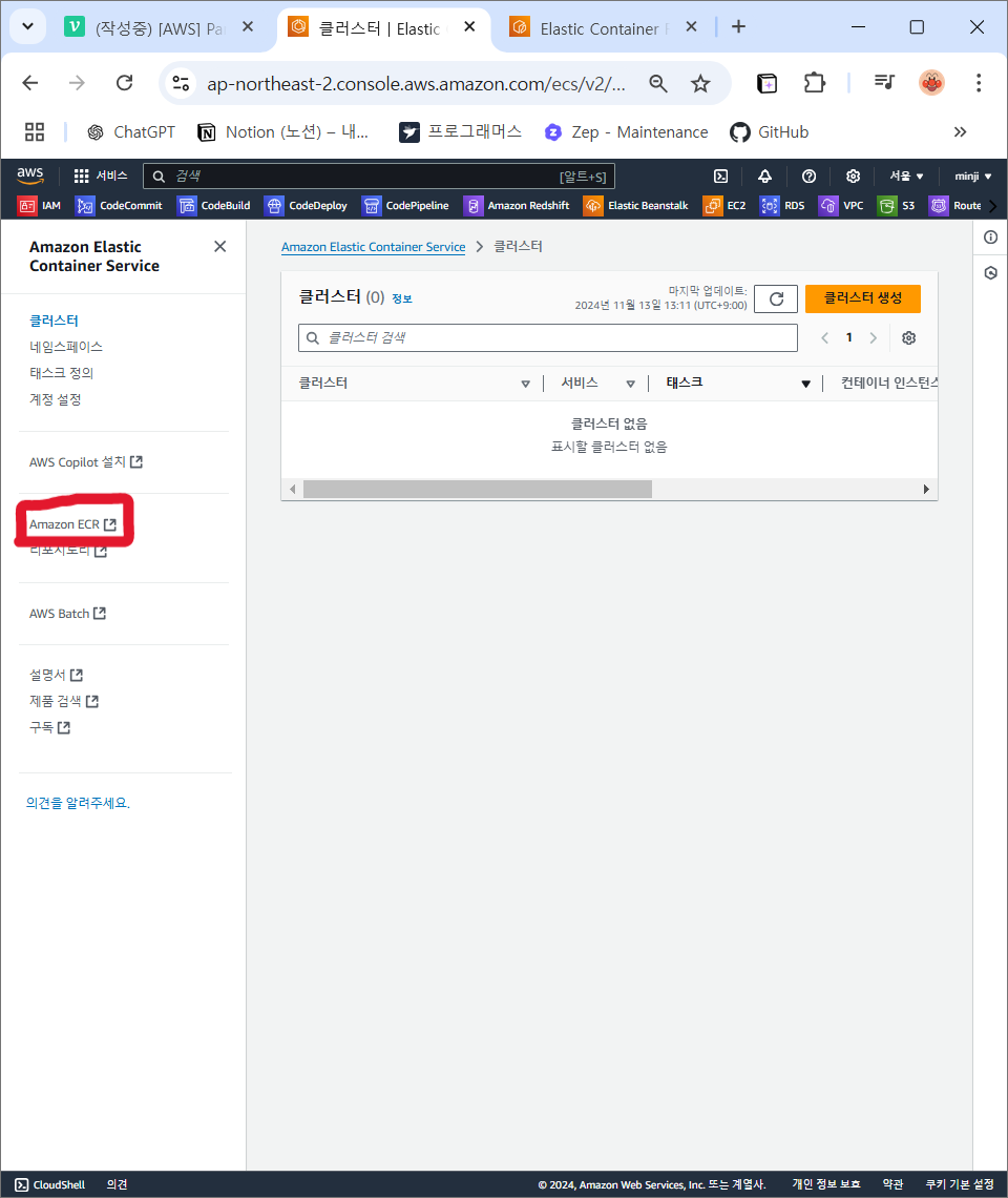 ECR을 사용하려면 먼저, ECS를 통해서 사용할 수 있음