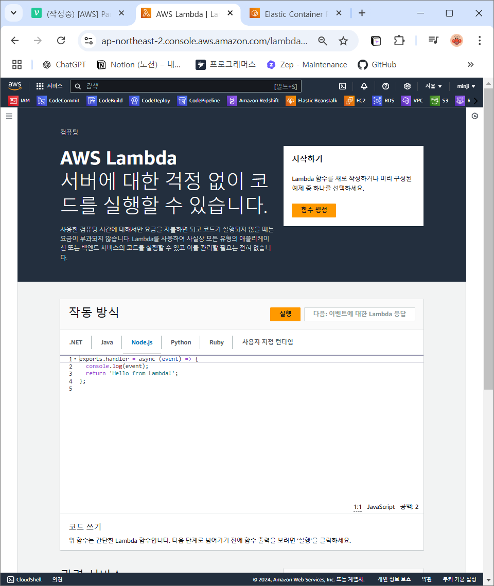 서버리스 컴퓨팅 서비스로, 사용자가 직접 서버를 프로비저닝하거나 관리하지 않고도 코드를 실행할 수 있도록 해줍니다.