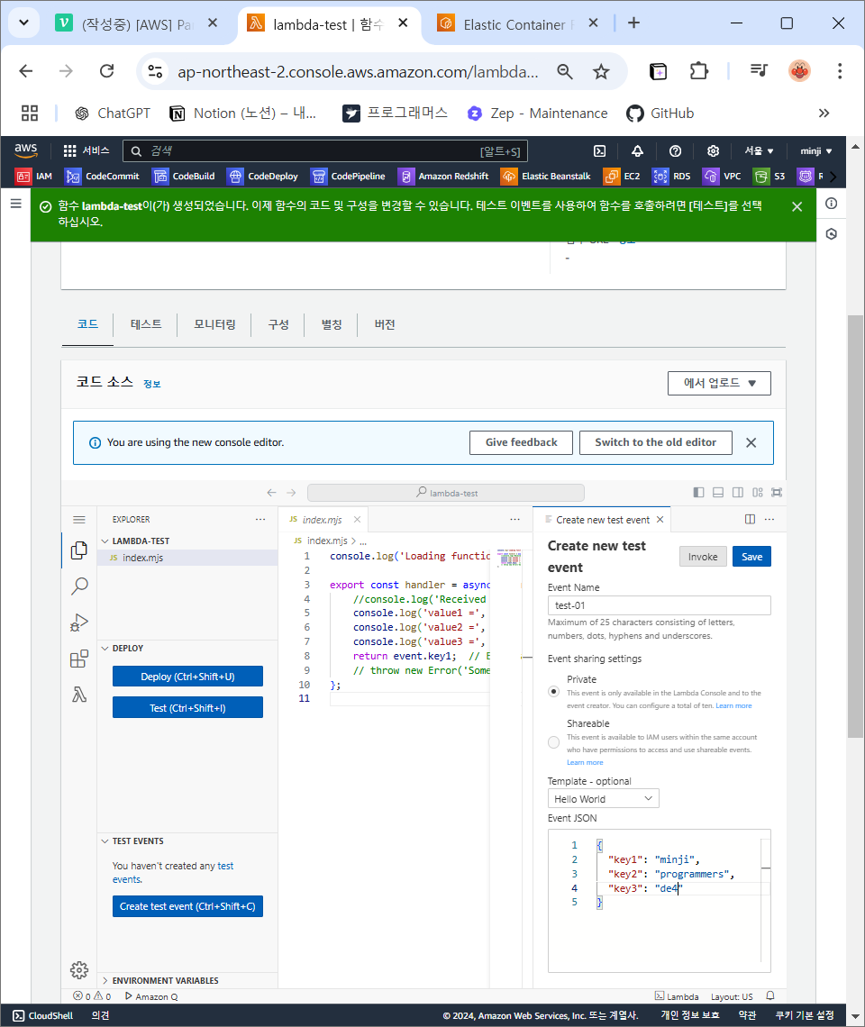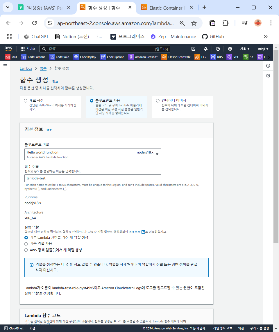 Lambda 대시보드에서 함수 생성 버튼 클릭