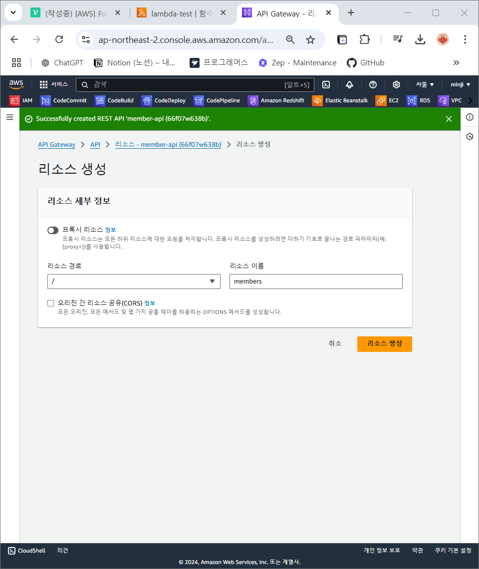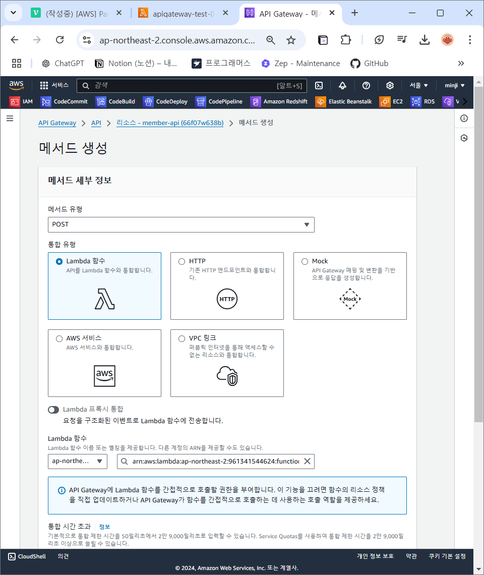메서드 생성 (POST 메서드를 Lambda 함수로)