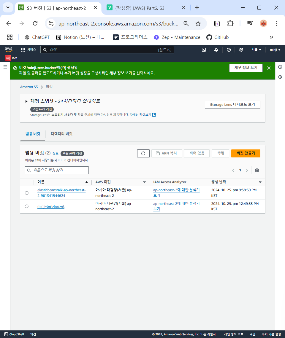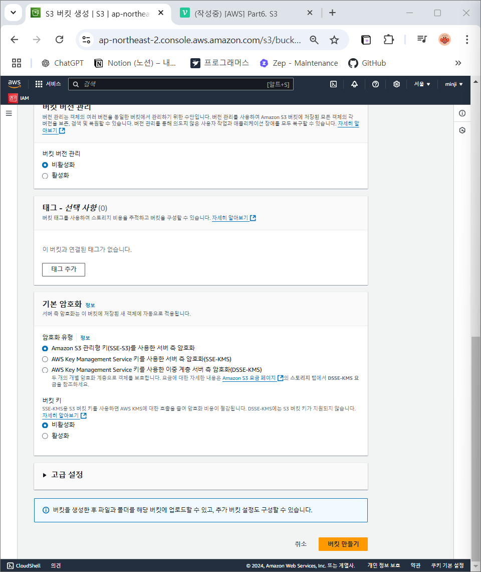 3) 버킷 버전관리, 버킷 키 비활성화 -> 버킷 만들기 클릭