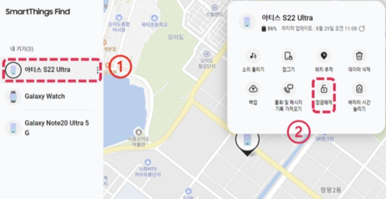 삼성 계정이 있으시다면 ‘내 모바일 찾기(Find My Mobile)’ 기능을 통해 원격으로 삼성 폰의 잠금을 해제하실 수 있습니다.