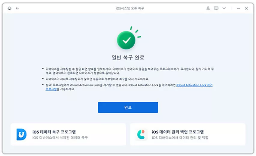 혹시 여전히 문제가 남아 있다면, 전문 복구 도구 Tenorshare ReiBoot을 사용해보세요.