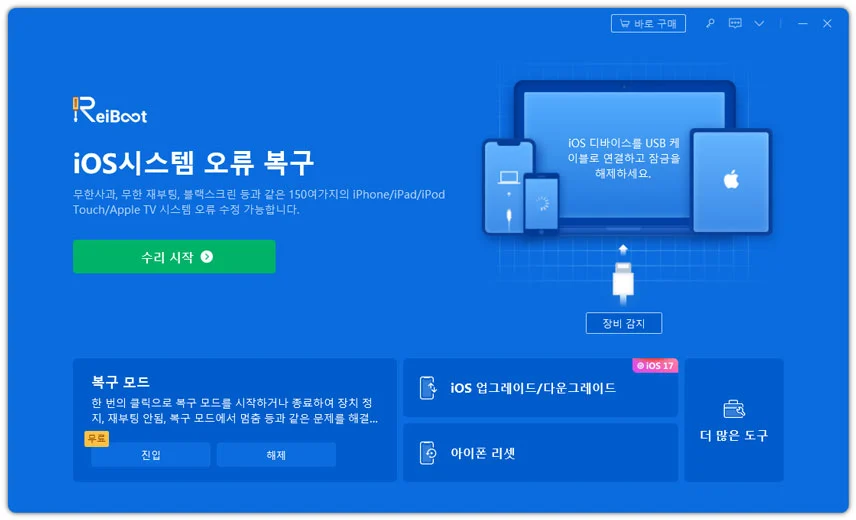 이럴 땐 전문가용 복구 도구인 Tenorshare ReiBoot을 사용하면 간단하게 해결할 수 있습니다.