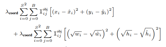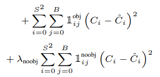즉 grid cell들을 i를 통해 순회하며 j를 통해 최고의 IOU를 갖는 box들만으로 loss를 계산하는식이다