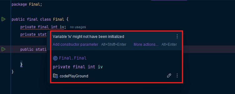 - 해당 클래스는 “상속”이 “불가”하게 만들어준다