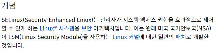결국 셀리눅스가 접근을 막고있던 것이었다.